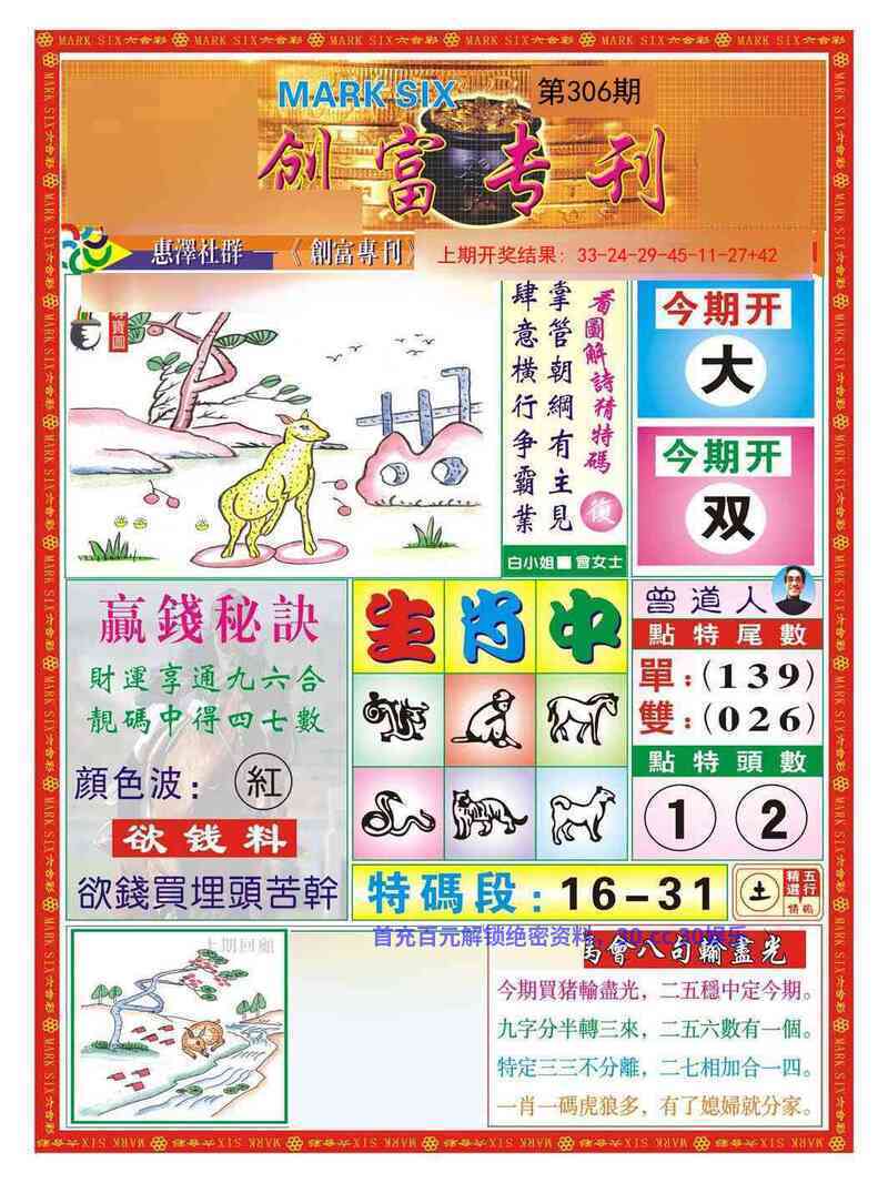 306期:绝杀二肖【马兔】开牛17准
