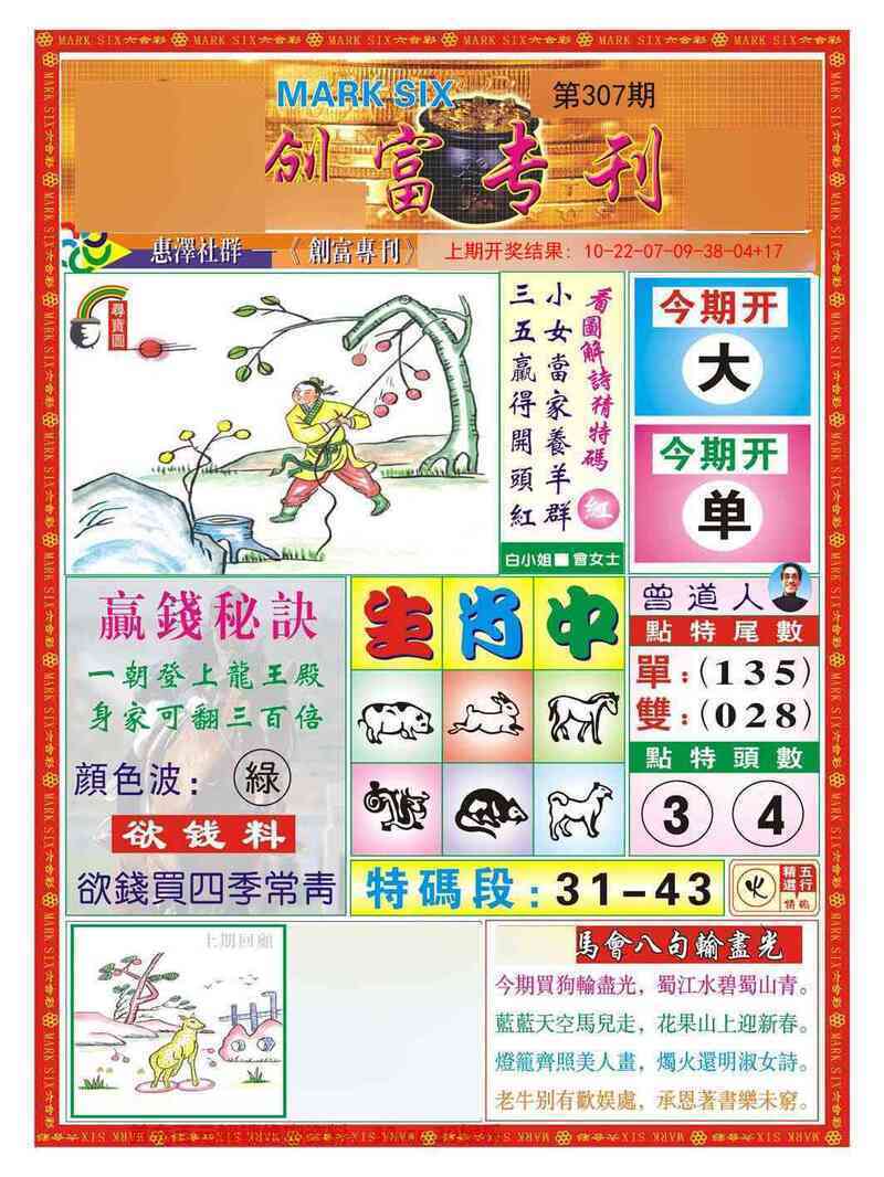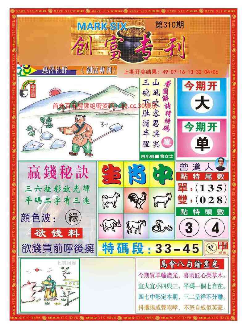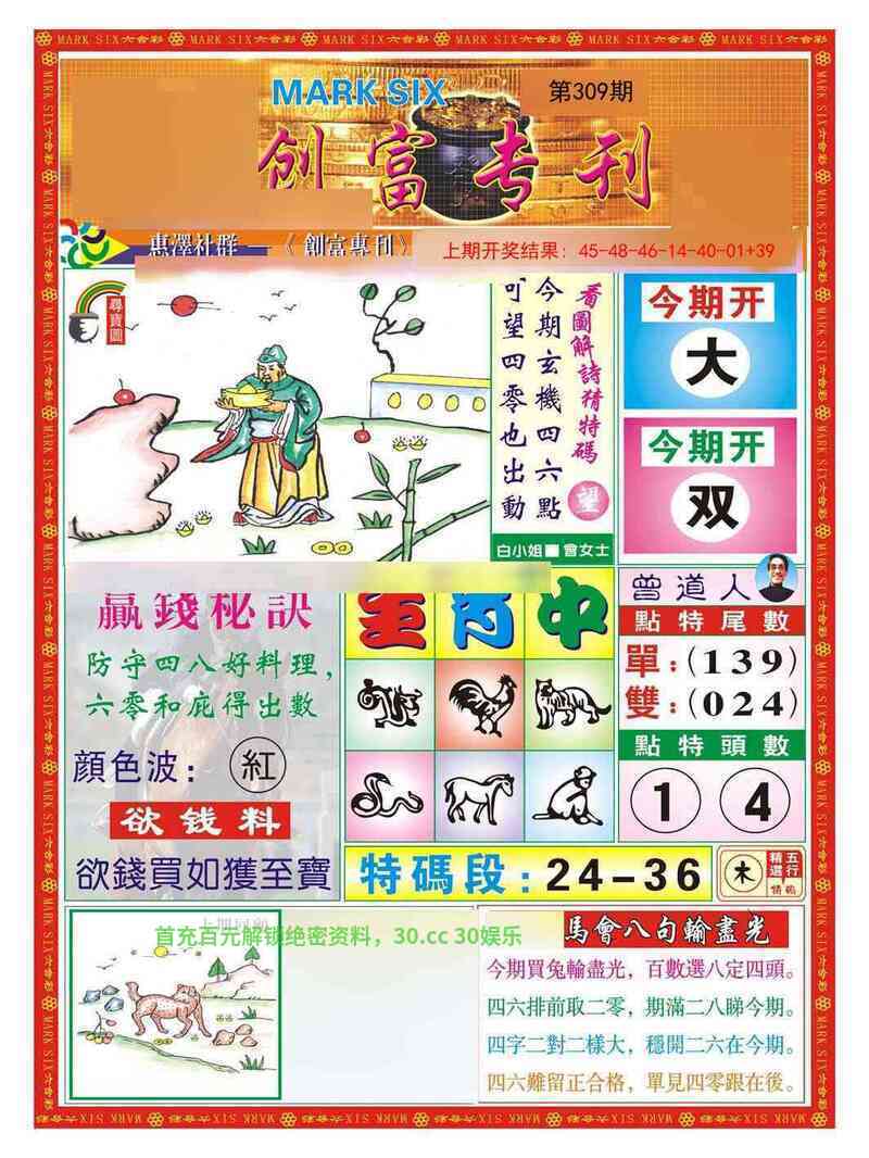 309期:赌王独合【合字】开:鼠06准