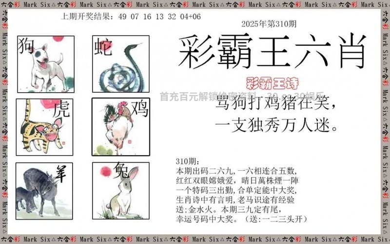 310期:绝杀二肖【狗兔】开虎16准